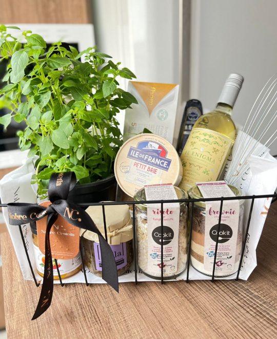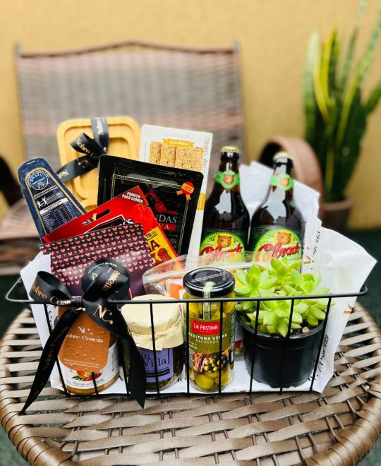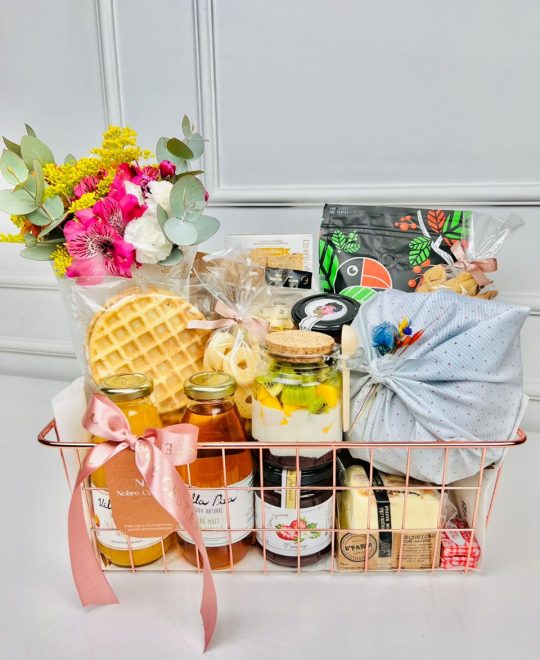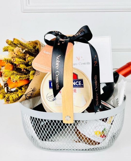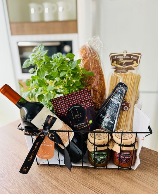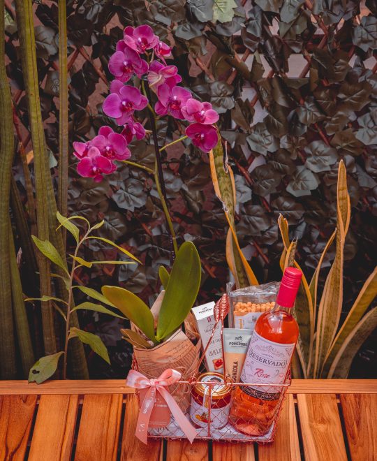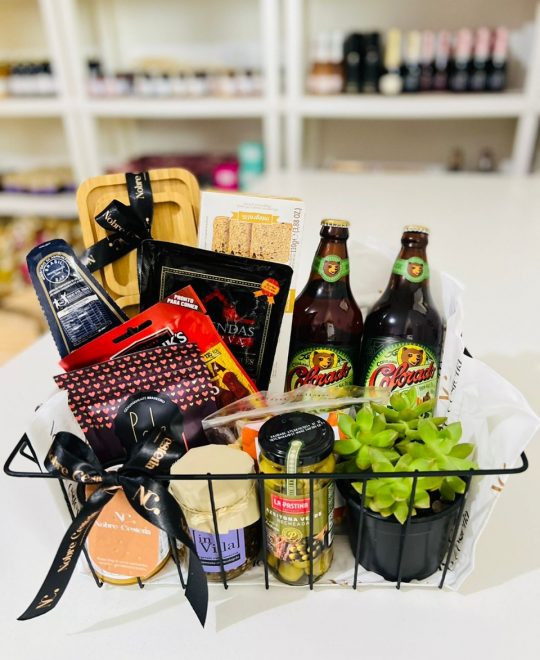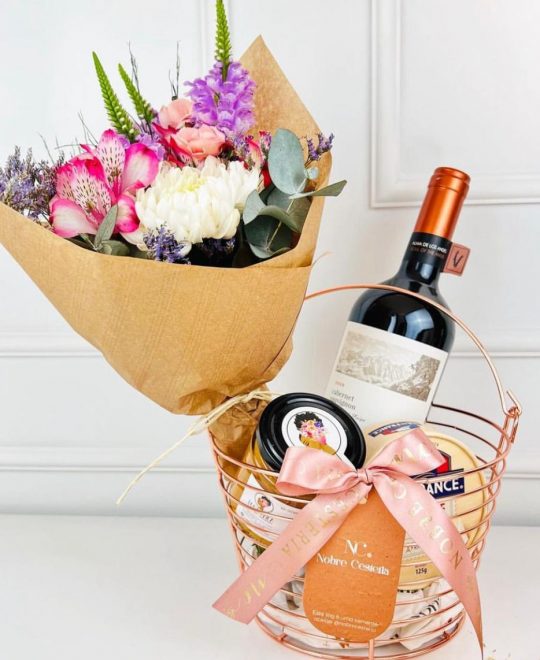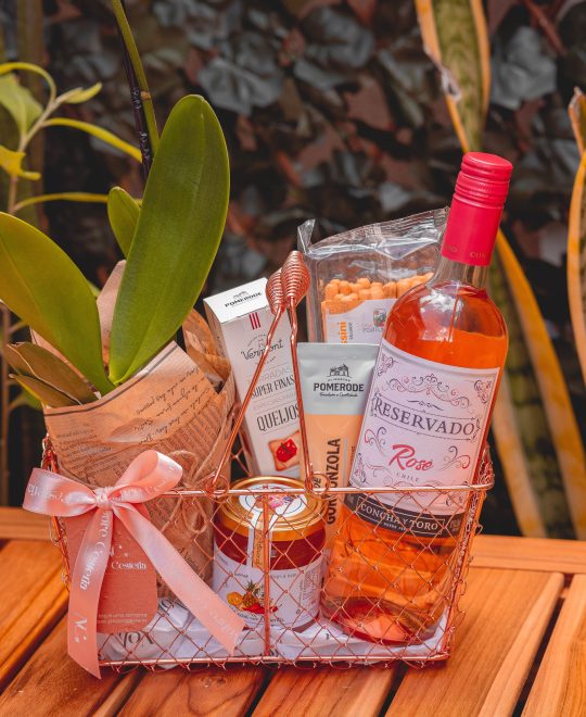 01 vinho especial – 750ml (consultar carta) 01 creme de gorgonzola POMERODE 90g 01 geleia artesanal DONA CHICA 240g 01 torrada super fina VERMONT 44g 01 grissini sabor parmesão CASA FORTUNATO 90g gifts: 01 cesto aramado picnic rose 01 planta natural (consultar opções)
