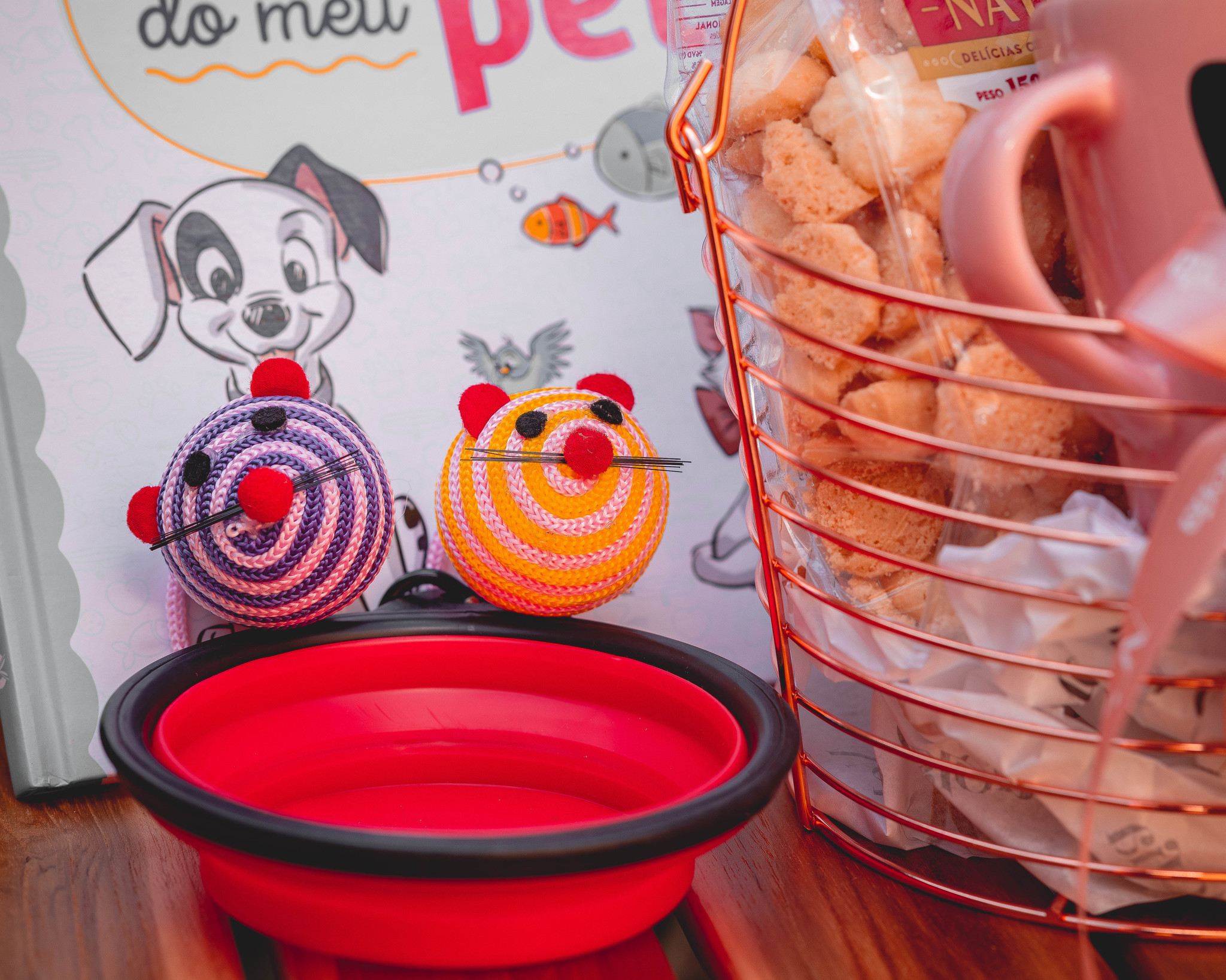 02 drip coffee (café individual com hastes flexíveis para colocar direto na caneca) ORFEU ou SANTA MÔNICA 01 biscoito amanteigado da semana Gifts 01 cesto aramado redondo preto ou rose 01 caneca “mãe de dog” 01 colher de aço cachorrinho 01 bolinha para pet 01 diário de pet 01 potinho retrátil 01 porta saquinho